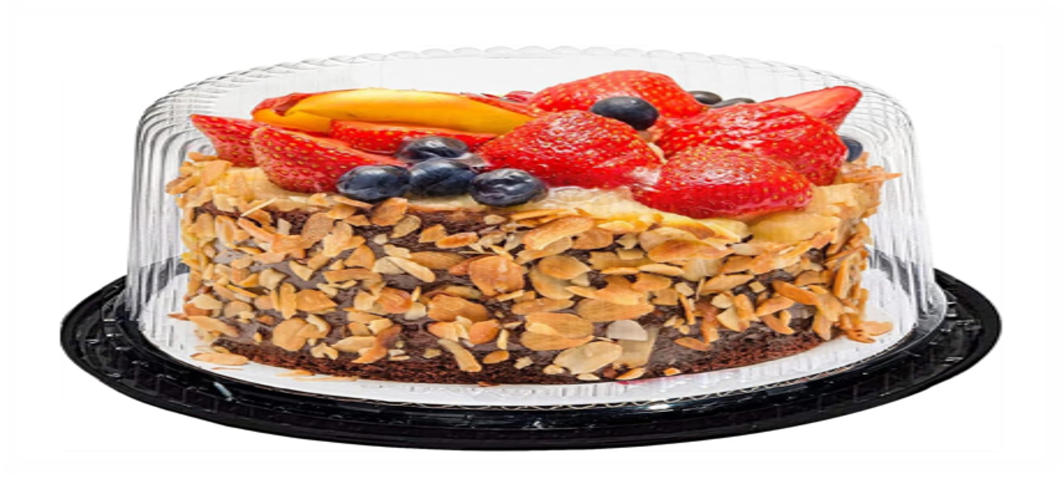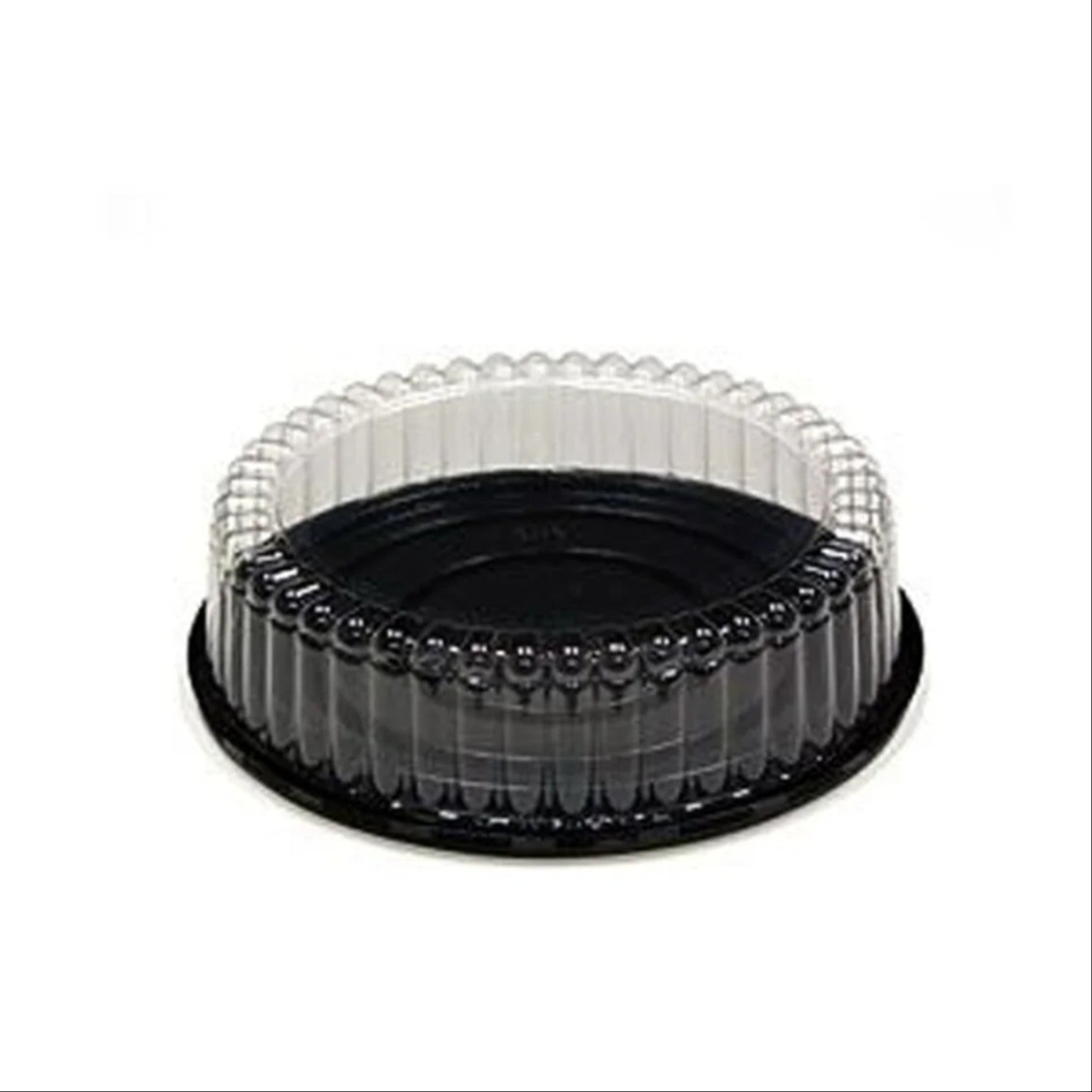 Protección y presentación: Base redonda de 8 pulgadas con cúpula estriada, diseñada para mantener y exhibir bizcochos de 8 pulgadas de 1 piso, garantizando su frescura y apariencia.