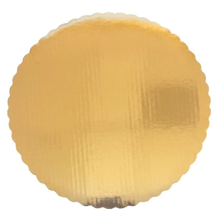 El Disco Oro de 12 pulgadas para bizcochos es una base resistente y decorativa diseñada para soportar y realzar la presentación de tus pasteles.