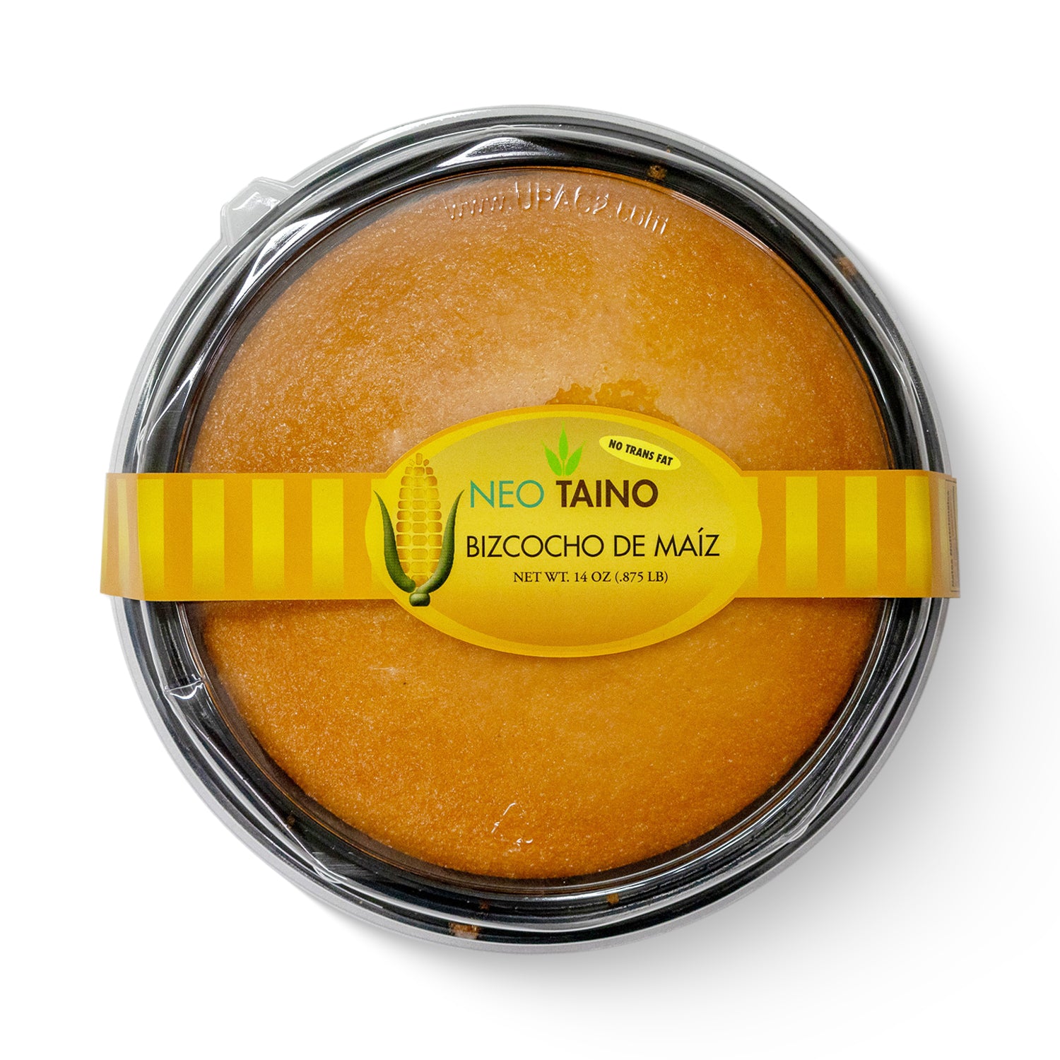 - Presentación Atractiva: Con su color dorado y aspecto apetitoso, el bizcocho de maíz Neo Taíno no solo sabe bien, sino que también luce excelente en la mesa, agregando un toque rústico y atractivo a tus postres.